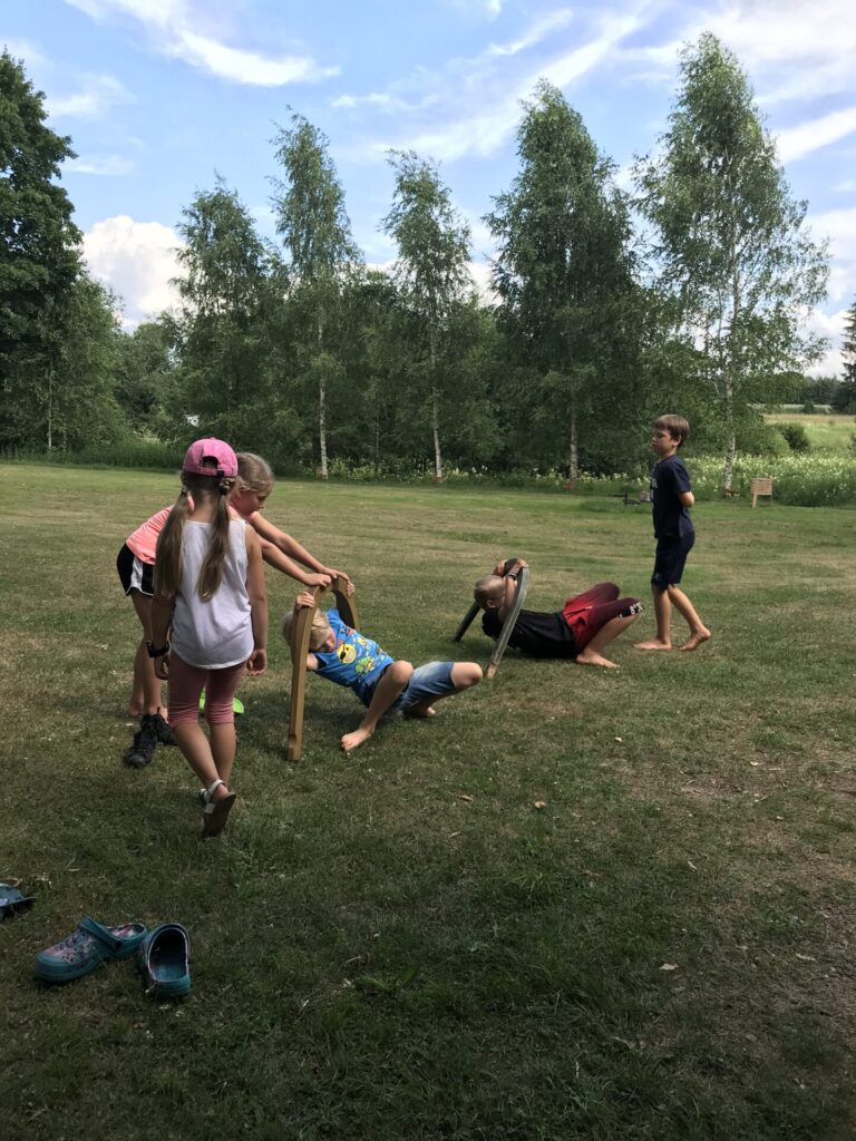 Lisaks mõtleme end vanasse rehetarre elama ja otsime üles mänguasjad või lihtsalt asjad, millega saaks/sobiks mängida. Õpime õues laulu- ja liikumismänge, teeme läbi jõukatsumisi ja osavusmänge. Puuhalust saab nukk ja puuoksast hobune – nii see mängumaa kujuneb.