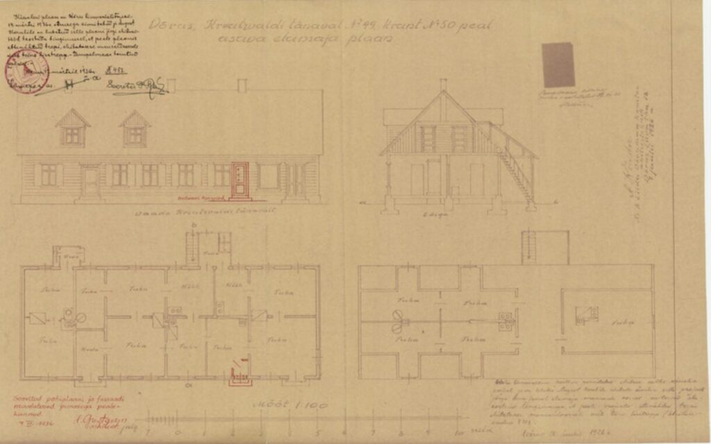 VK484:166 Ar279:166 Eluruumi (ümberehitus aidast) plaan 330; krunt 50 Riia ja Petseri nurga juures Ehitaja H. Hiir