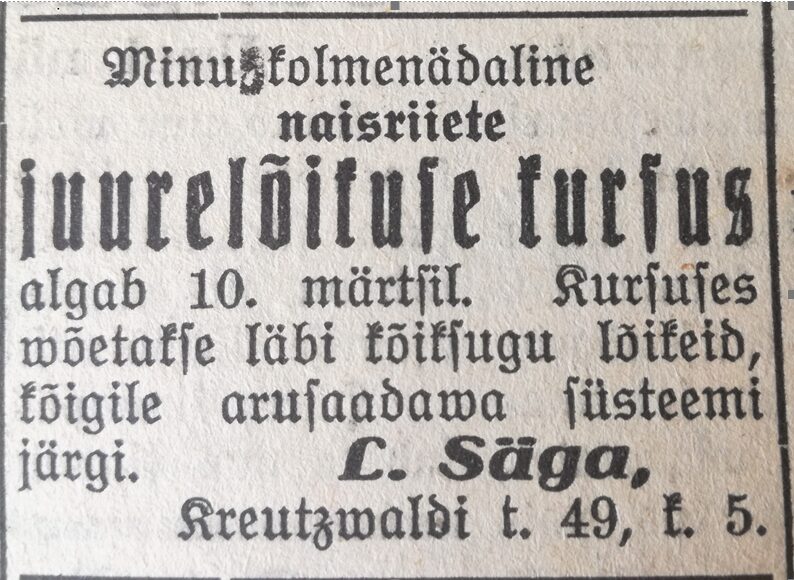 Teade juurdelõikamise kursustest Elu, 5.09.1938