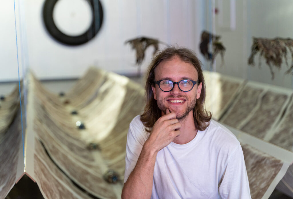 Oma esimesel suurel isikunäitusel Võrus seob Eesti Kunstiakadeemia graafilise disaini osakonna lõpetanud mitmekülgne kunstnik kokku trükikunsti, graafika, maali, skulptuuri ja installatsiooni, vaadates tagasi oma lapsepõlve mälestustesse läbi tuttavlike materjalide. Näitusel saab kohata dekonstrueerunud mälupiltide tõsiseltvõetavaid ja meelevaldseid rekonstruktsioone, mis muudavad näituseruumi samaaegselt põlluks, keldriks, mereks ja lakapealseks – paikadeks, kus avaldus huvi korduvuse ja rütmi vastu. Kunstniku fookuses on mälu selektiivne roll mälestuste jada kujunemisel narratiiviks. Liblikaefekti käivitajaks on sel korral traktor. Massiivsus väljendub nii koguses, kaalus, jõus, intensiivsuses, hapruses, otsesuses kui ka kaudsuses.